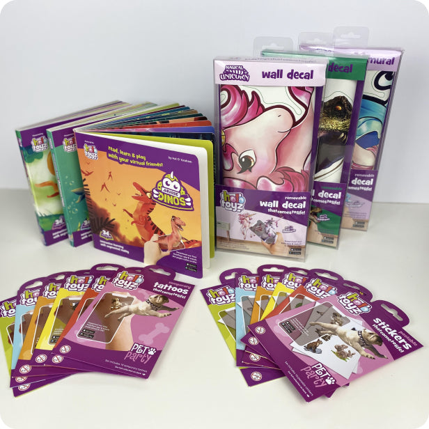 It couldn’t be easier! Simply download our free HoloToyz app, scan your product images and watch the animations come to life. Tap the cube to place them in the room with you and take photos and videos with your favourite characters! It’s like magic!